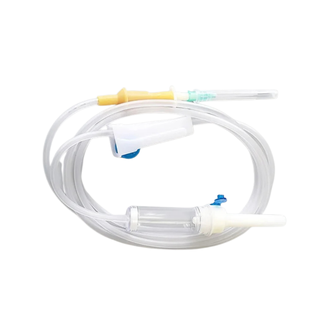 The Infusion Giving Set is designed to ensure safe, efficient, and accurate delivery of intravenous fluids in clinical and healthcare settings. It features a clear, transparent, and flexible moulded chamber, available in vented or non-vented options, allowing for easy visual monitoring of fluid flow.